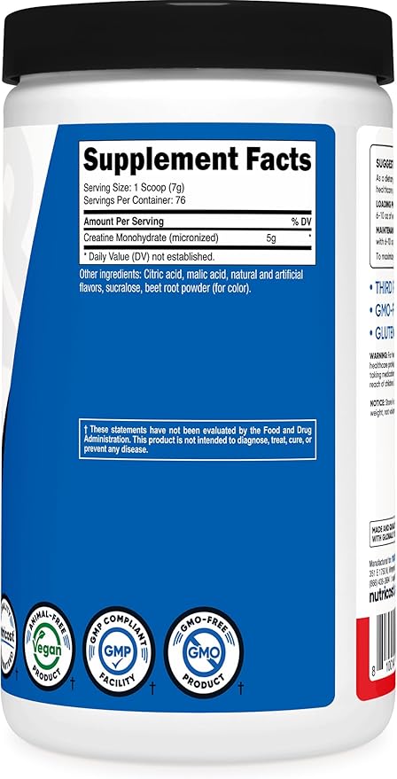 Práctico y sabroso: El monohidrato de creatina con sabor de Nutricost le da un toque delicioso a tu ingesta diaria de creatina, convirtiéndolo en un complemento ideal para tu rutina de ejercicios.