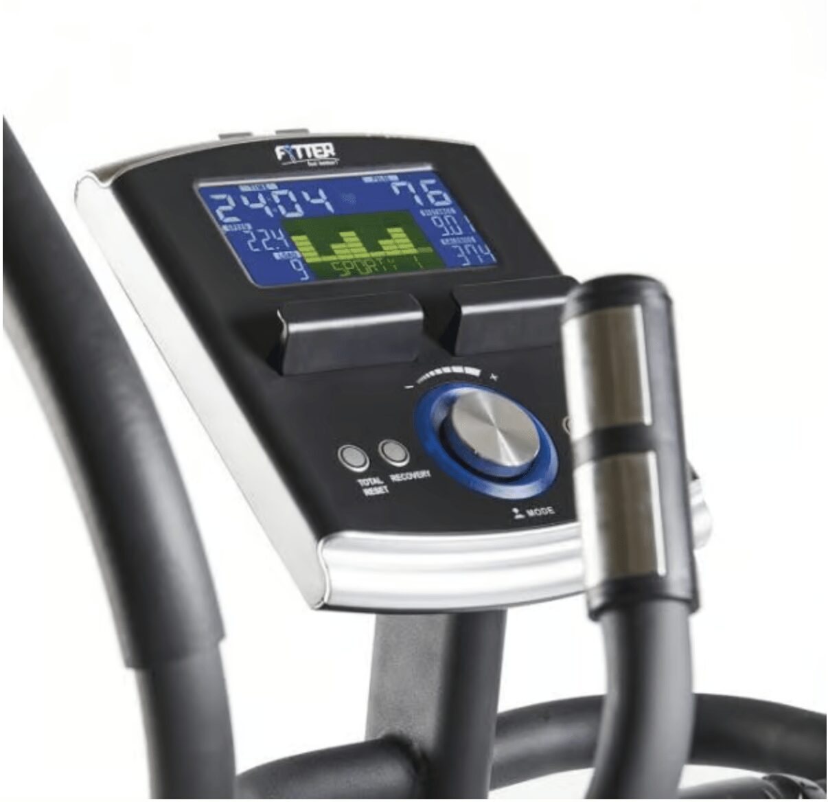 Manillar fijo ergonómico con sensor de pulso incorporado para una lectura inmediata y precisa del mismo.
