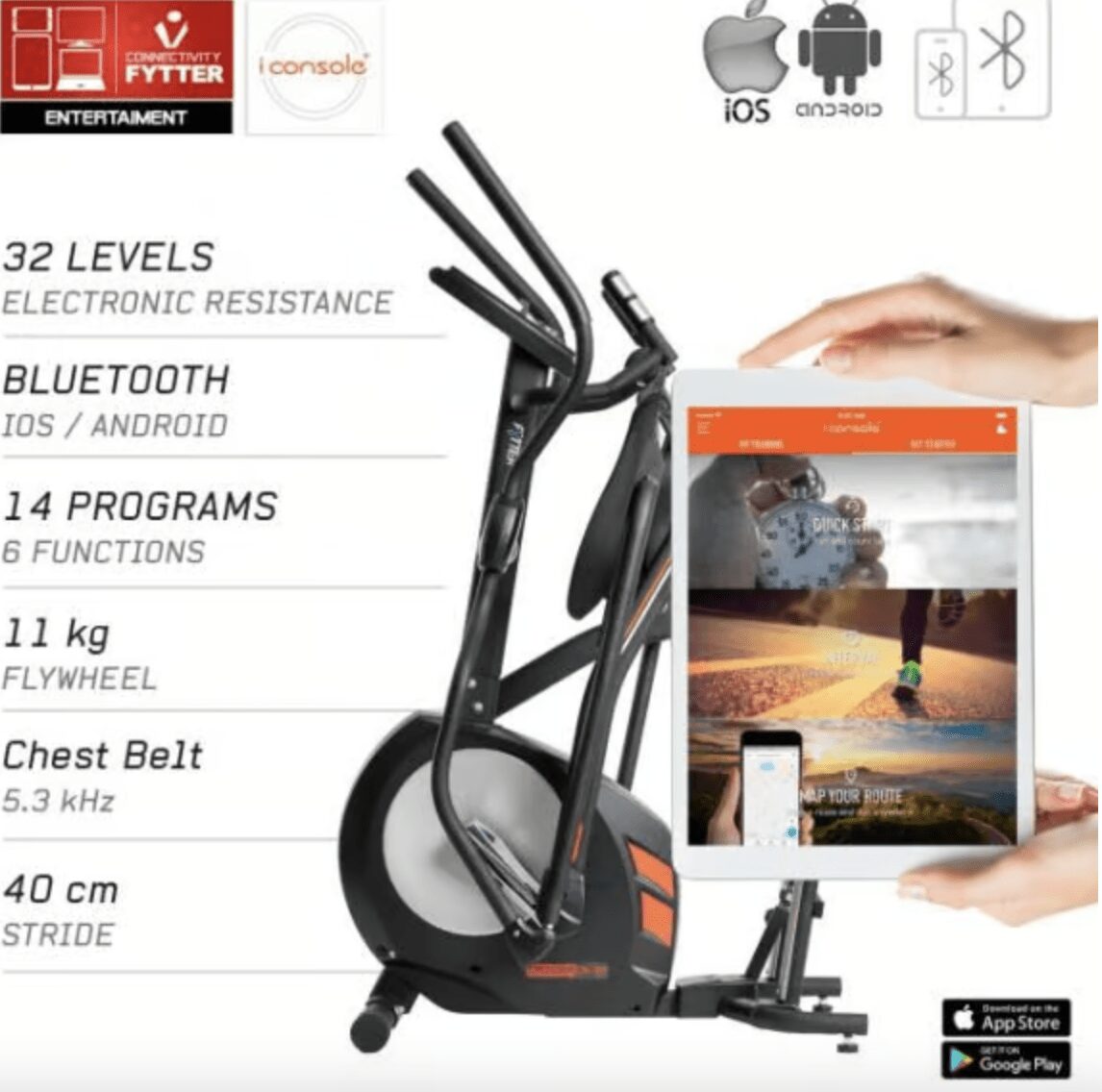 PANTALLA. 12 programas de entrenamiento, 5 programas personalizables. Programas HRC y “”BodyFat””.
